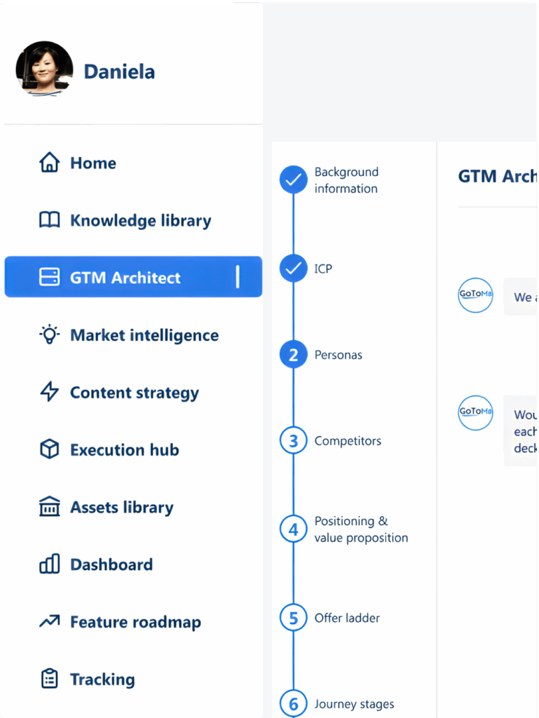 Define and refine GTM strategy, develop plans, and generate assets for marketing, product, and sales in hours, not weeks.